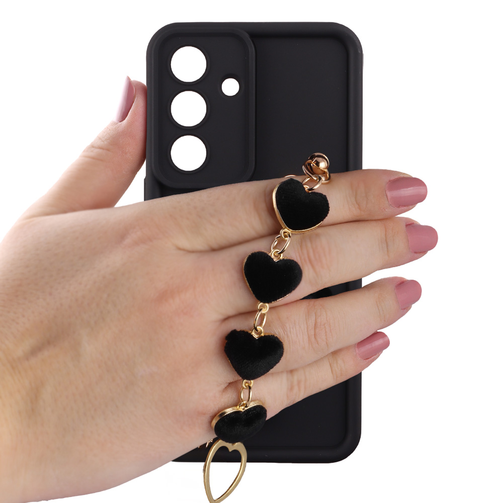 VOLTE-TEL ΘΗΚΗ SAMSUNG S26 5G 6.3" SILICON TPU WITH STRAP FULL CAMERA PROTECTION BLACK WITH BLACK HEARTS