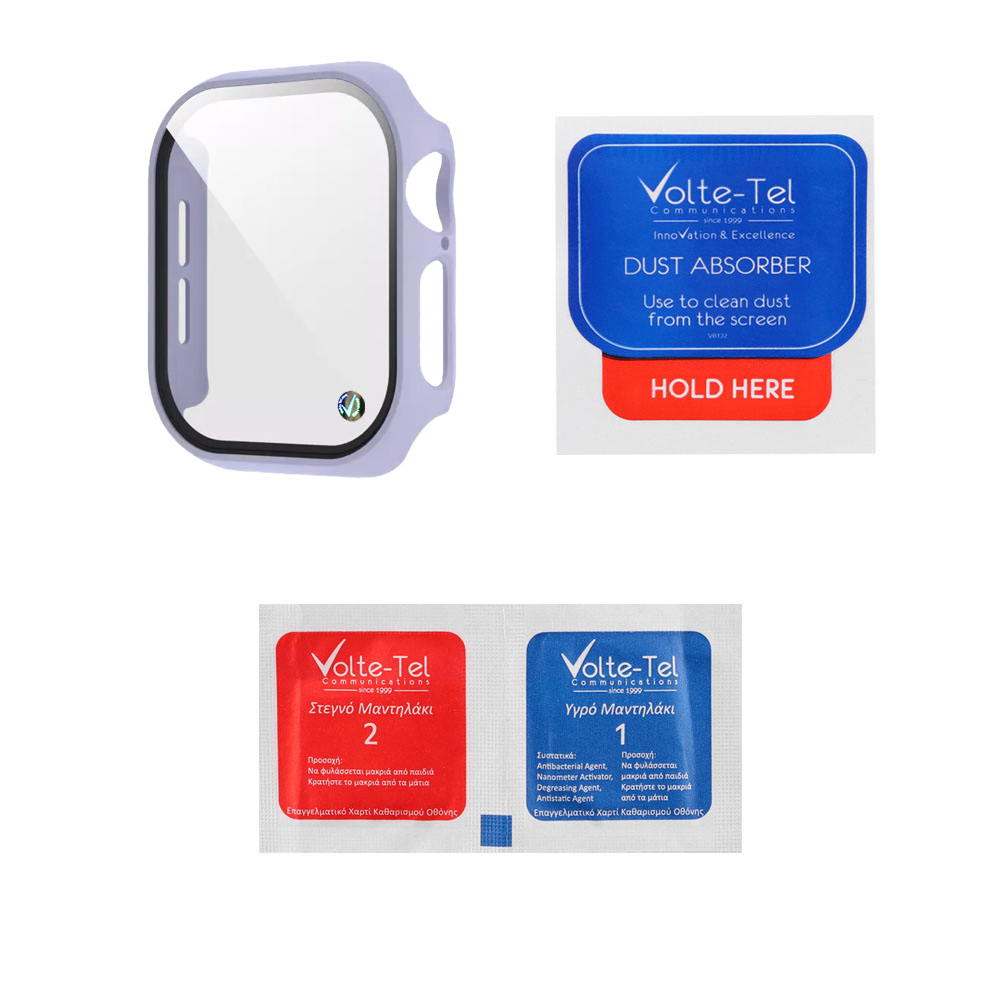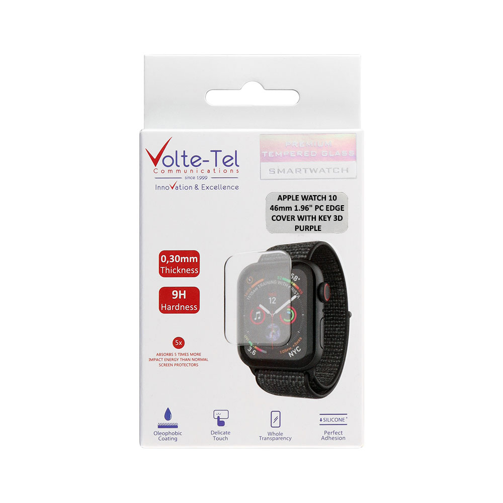 VOLTE-TEL TEMPERED GLASS APPLE WATCH 10 46mm 1.96" 9H 0.30mm PC EDGE COVER WITH KEY 3D FULL GLUE FULL COVER PURPLE