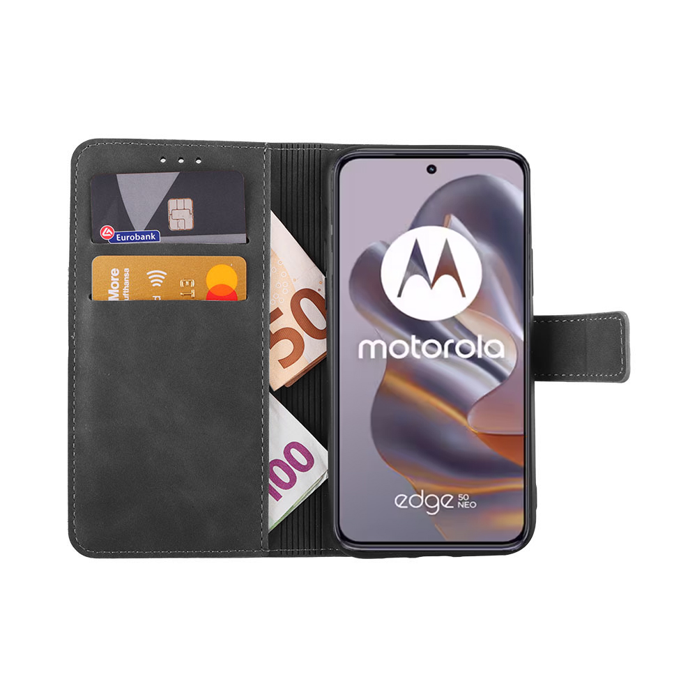 LIME ΘΗΚΗ MOTOROLA MOTO EDGE 50 NEO 5G 6.4" ESSENTIAL MAGNET BOOK STAND CLIP GREY