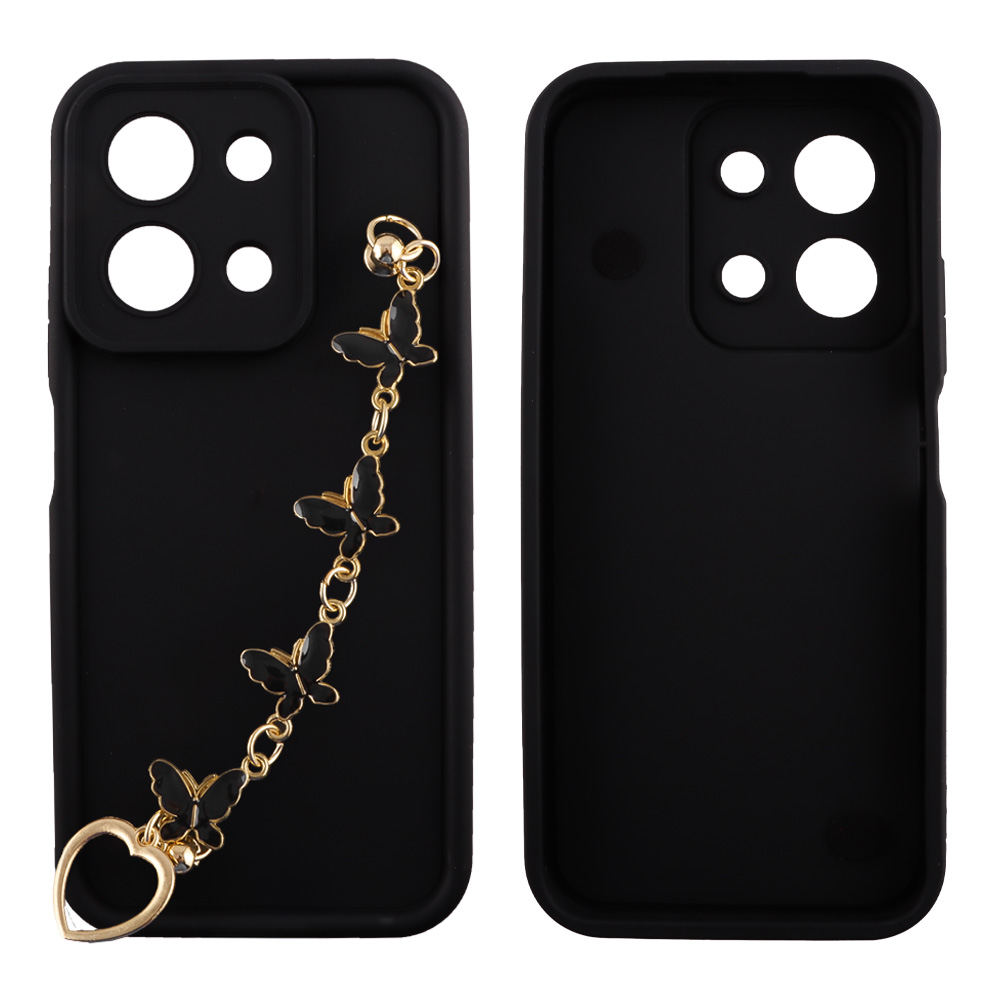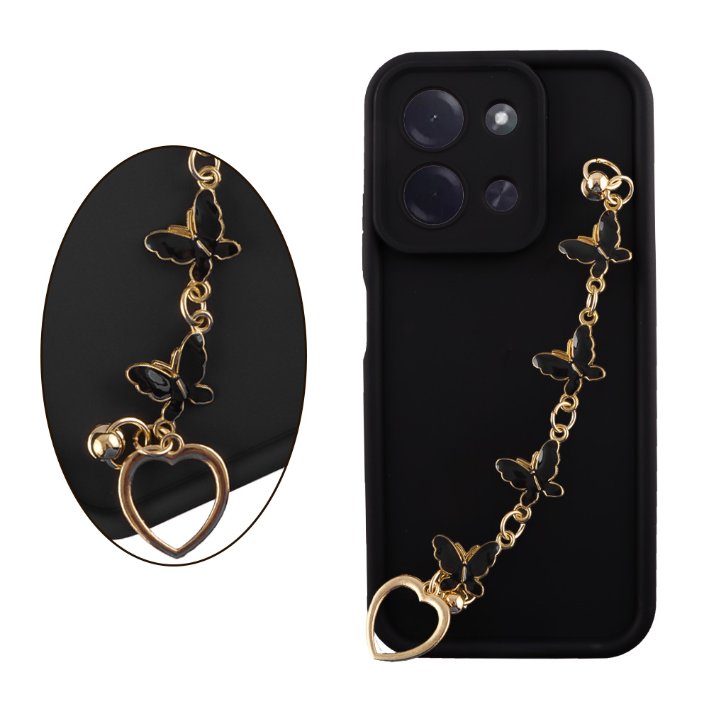 VOLTE-TEL ΘΗΚΗ XIAOMI POCO C85 4G / REDMI 15C 4G 6.9" SILICON TPU WITH STRAP FULL CAMERA PROTECTION BLACK WITH BLACK BUTTERFLIES