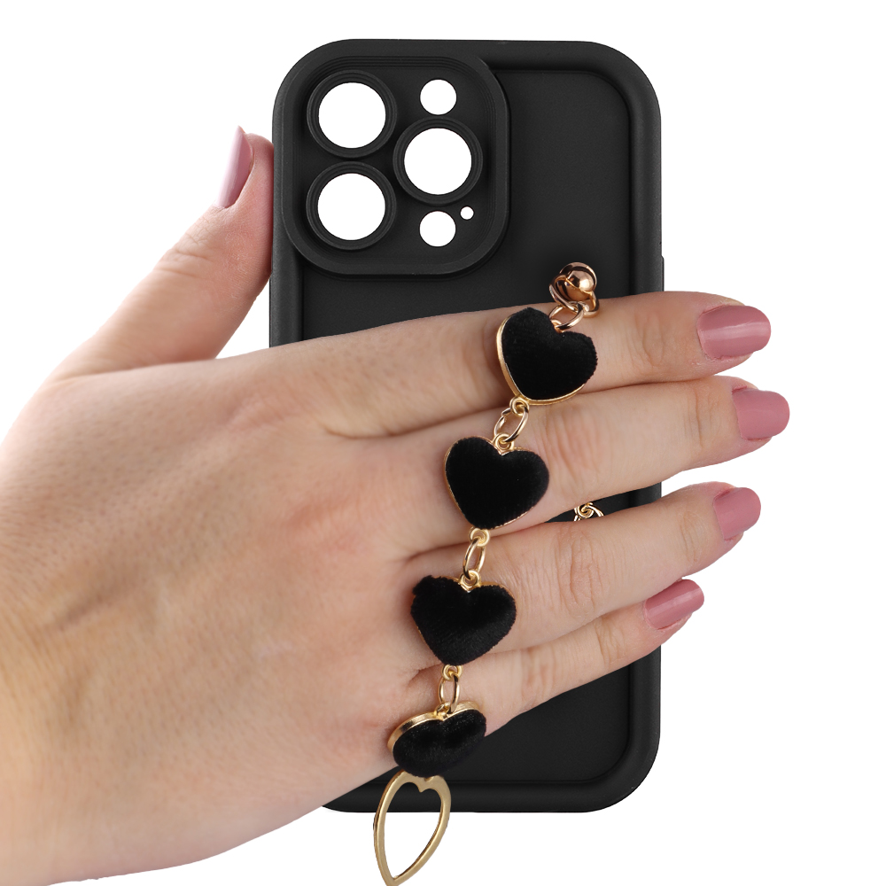 VOLTE-TEL ΘΗΚΗ IPHONE 13 PRO 6.1" SILICON TPU WITH STRAP FULL CAMERA PROTECTION BLACK WITH BLACK HEARTS
