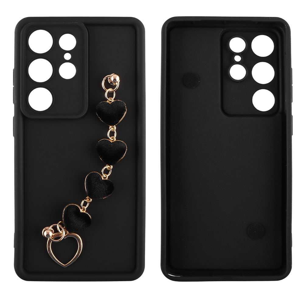VOLTE-TEL ΘΗΚΗ SAMSUNG S25 ULTRA 5G S938 6.9" SILICON TPU WITH STRAP FULL CAMERA PROTECTION BLACK WITH BLACK HEARTS