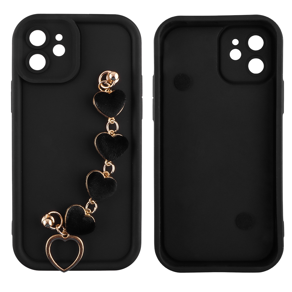 VOLTE-TEL ΘΗΚΗ IPHONE 12 6.1" SILICON TPU WITH STRAP FULL CAMERA PROTECTION BLACK WITH BLACK HEARTS