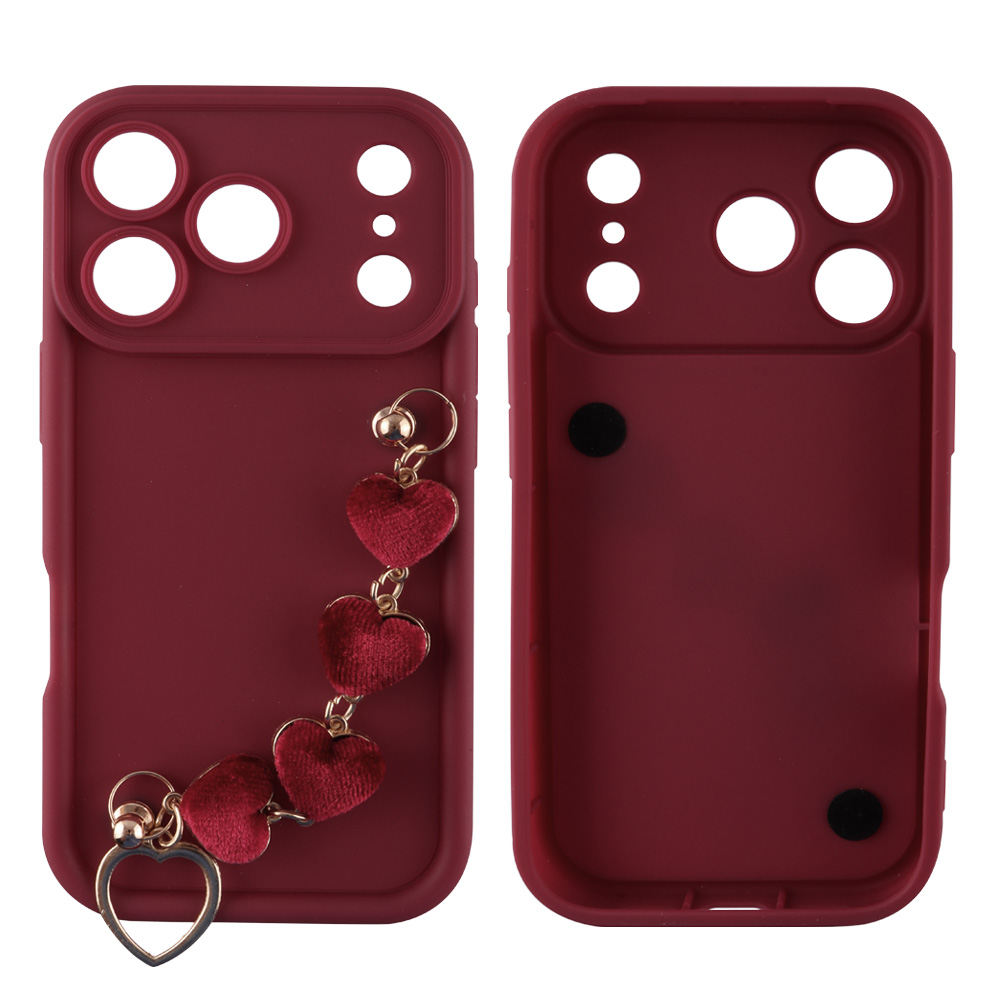VOLTE-TEL ΘΗΚΗ IPHONE 17 PRO 6.3" SILICON TPU WITH STRAP FULL CAMERA PROTECTION BURGUNDY WITH RED HEARTS