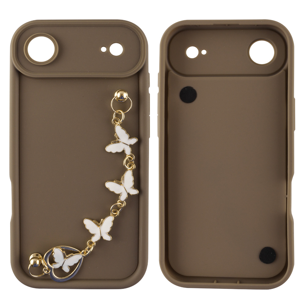 VOLTE-TEL ΘΗΚΗ IPHONE 17 AIR 6.5" SILICON TPU WITH STRAP FULL CAMERA PROTECTION BROWN WITH WHITE BUTTERFLIES