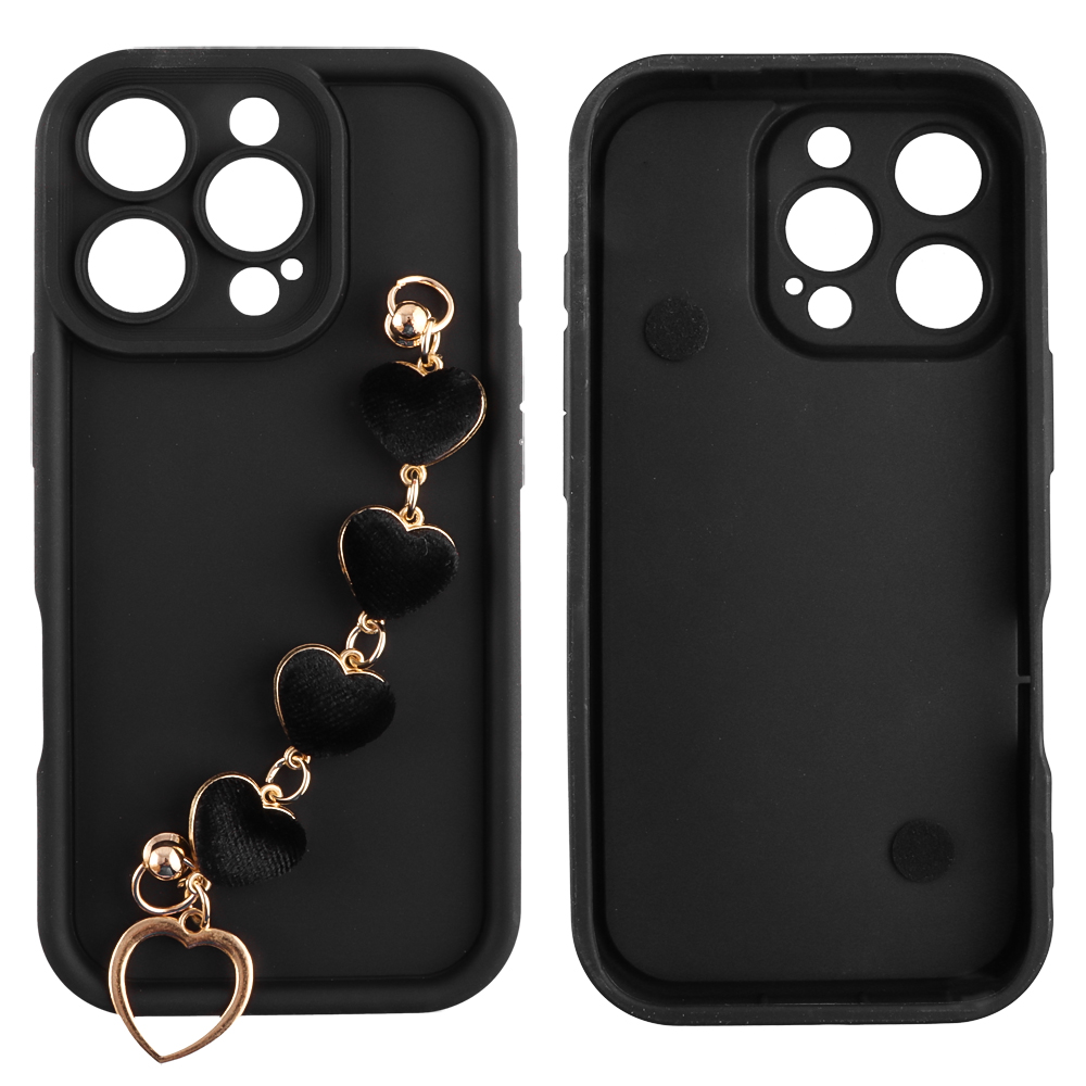 VOLTE-TEL ΘΗΚΗ IPHONE 16 PRO 6.3" SILICON TPU WITH STRAP FULL CAMERA PROTECTION BLACK WITH BLACK HEARTS