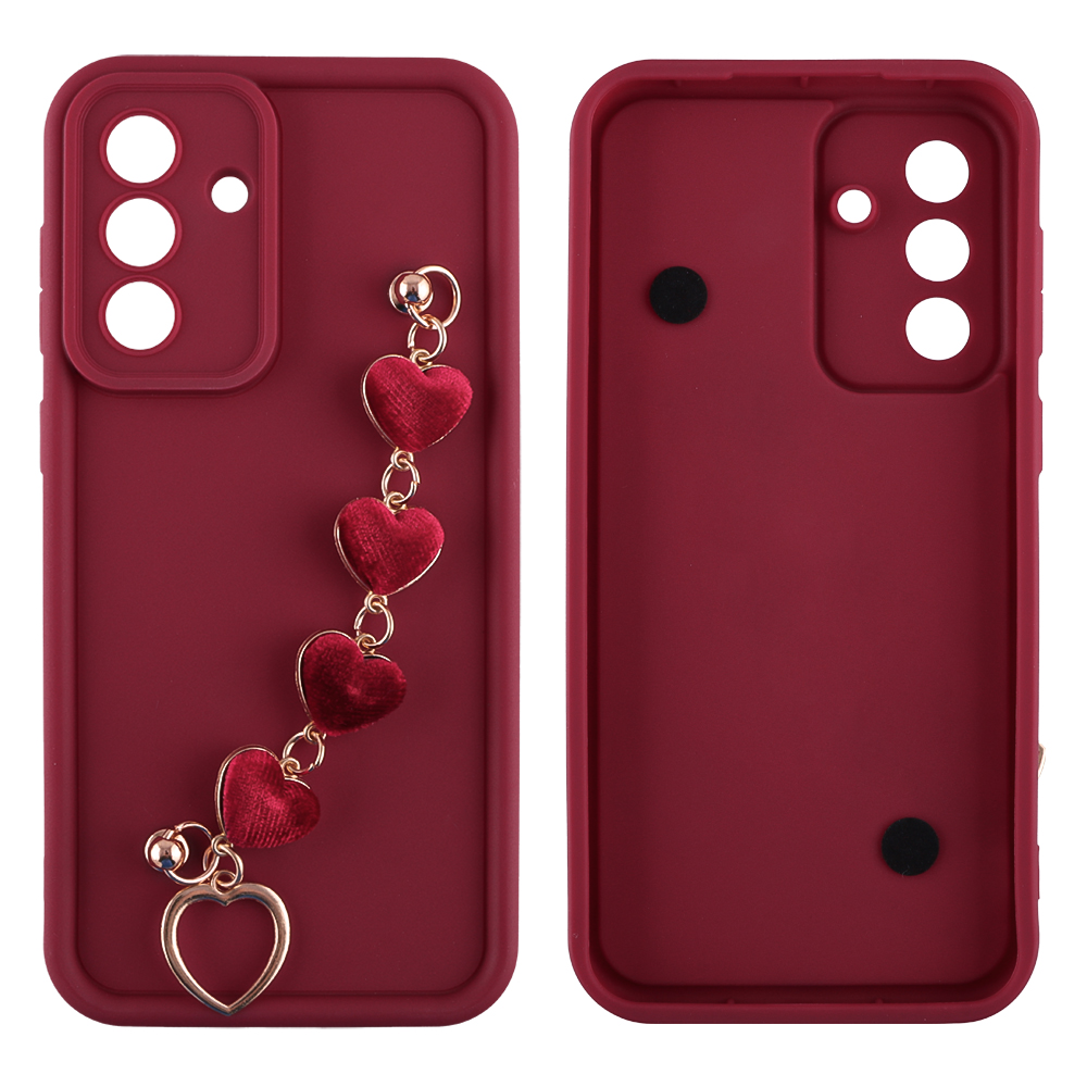 VOLTE-TEL ΘΗΚΗ SAMSUNG A36 5G A366 6.7" SILICON TPU WITH STRAP FULL CAMERA PROTECTION BURGUNDY WITH RED HEARTS