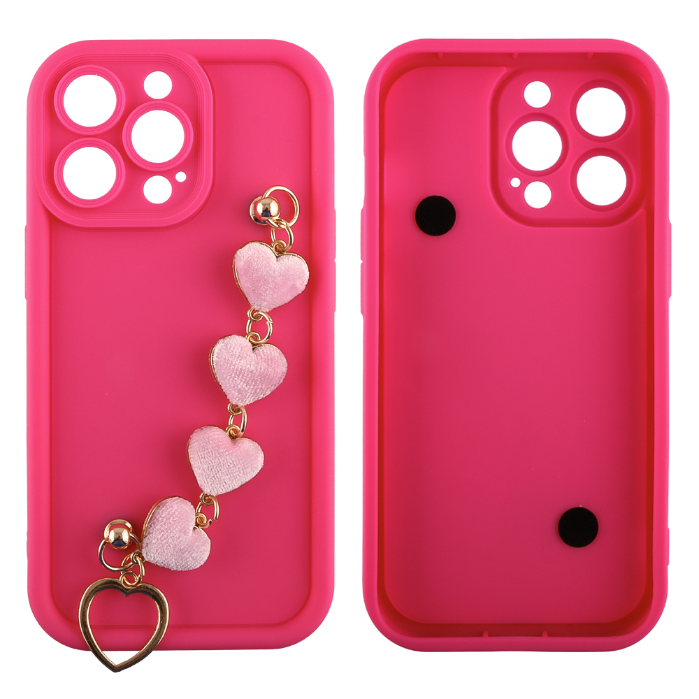 VOLTE-TEL ΘΗΚΗ IPHONE 13 PRO 6.1" SILICON TPU WITH STRAP FULL CAMERA PROTECTION PINK WITH PINK HEARTS