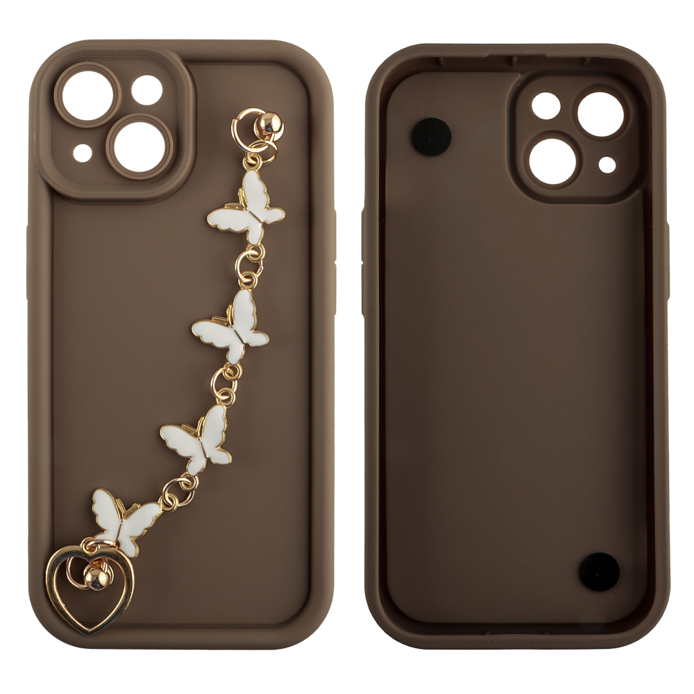 VOLTE-TEL ΘΗΚΗ IPHONE 15 6.1" SILICON TPU WITH STRAP FULL CAMERA PROTECTION BROWN WITH WHITE BUTTERFLIES