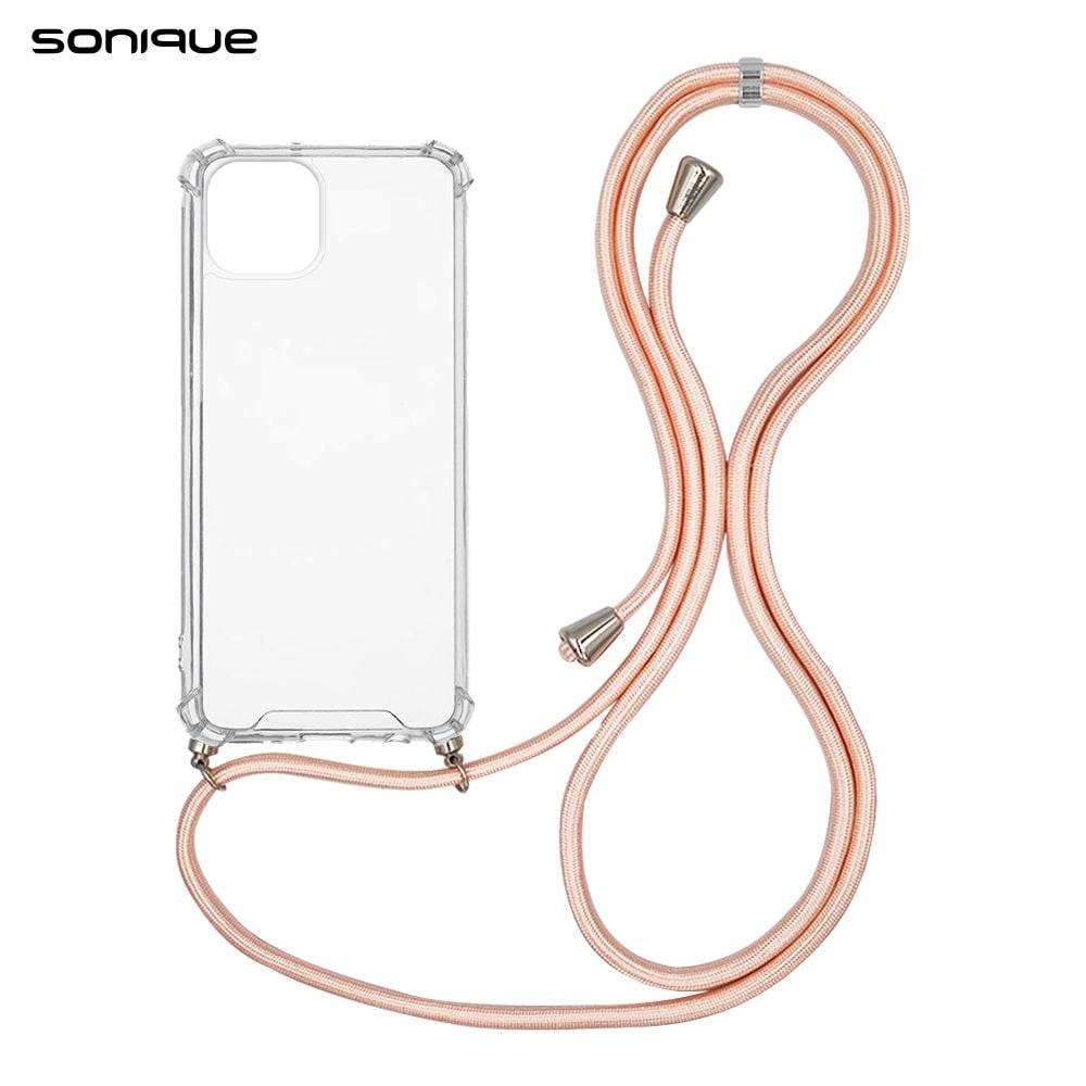 ΘΗΚΗ ΣΙΛΙΚΟΝΗΣ ΜΕ ΚΟΡΔΟΝΙ SONIQUE ARMOR CLEAR APPLE IPHONE 14 ΡΟΖ ΣΑΤΙΝΕ
