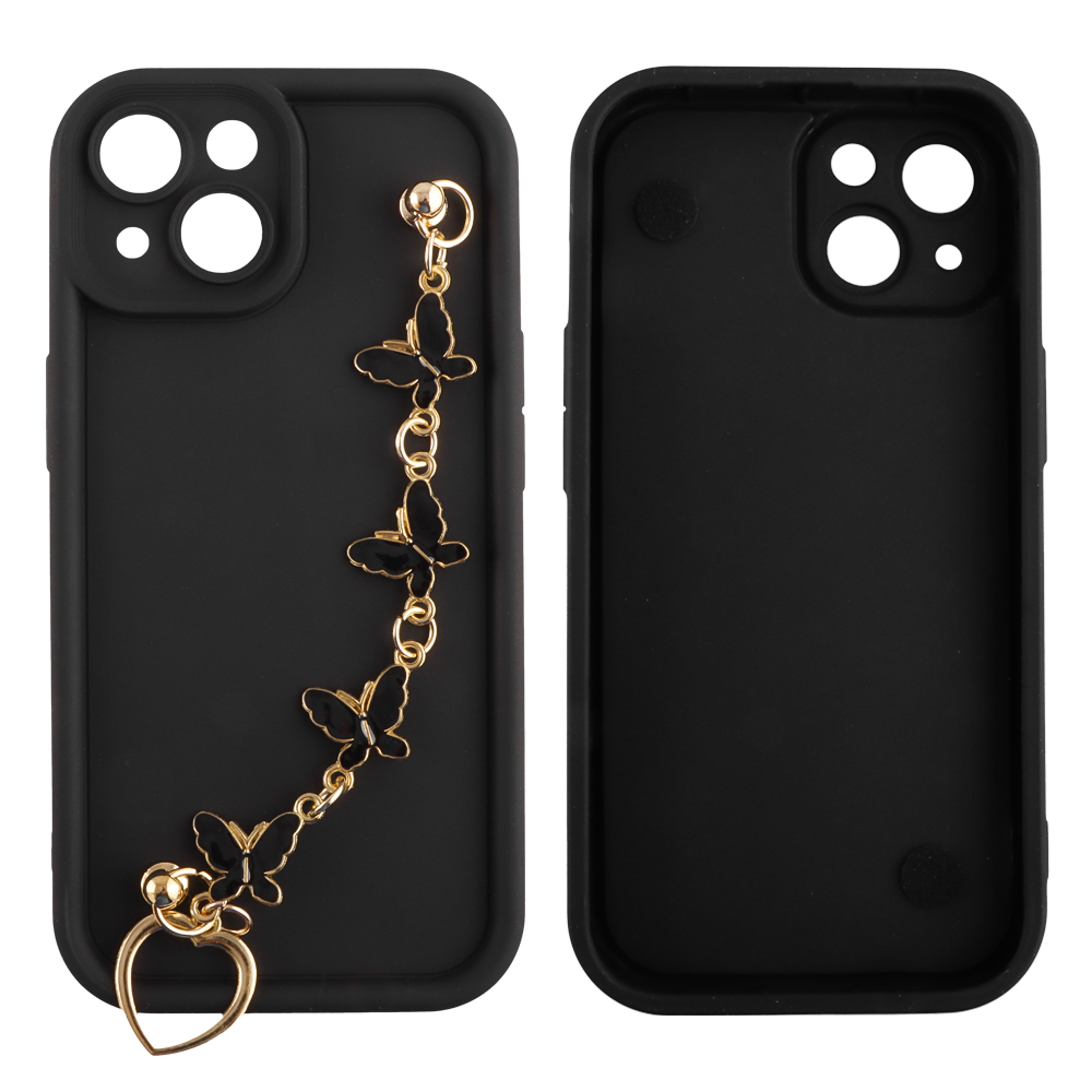 VOLTE-TEL ΘΗΚΗ IPHONE 14 6.1" SILICON TPU WITH STRAP FULL CAMERA PROTECTION BLACK WITH BLACK BUTTERFLIES