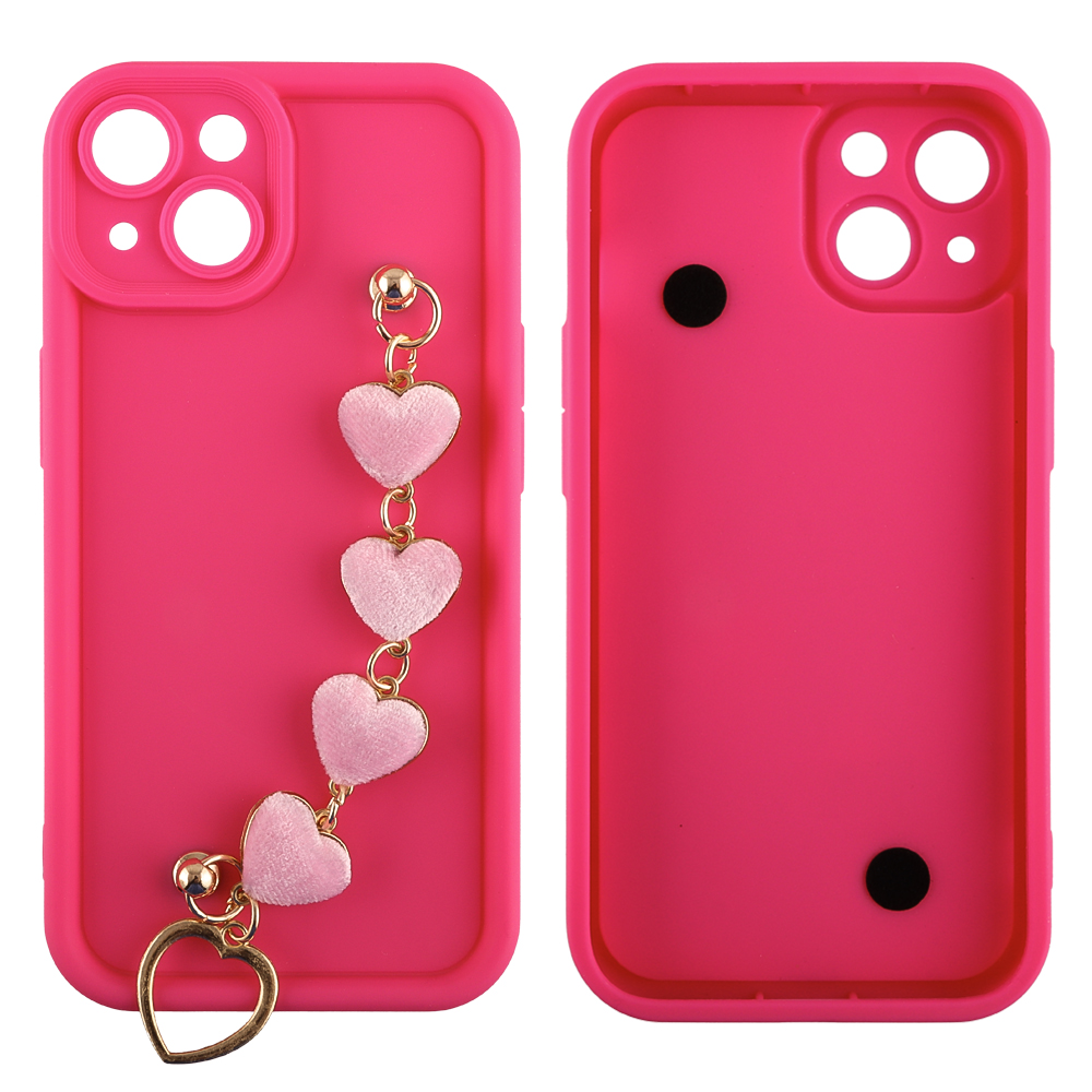 VOLTE-TEL ΘΗΚΗ IPHONE 14 6.1" SILICON TPU WITH STRAP FULL CAMERA PROTECTION PINK WITH PINK HEARTS
