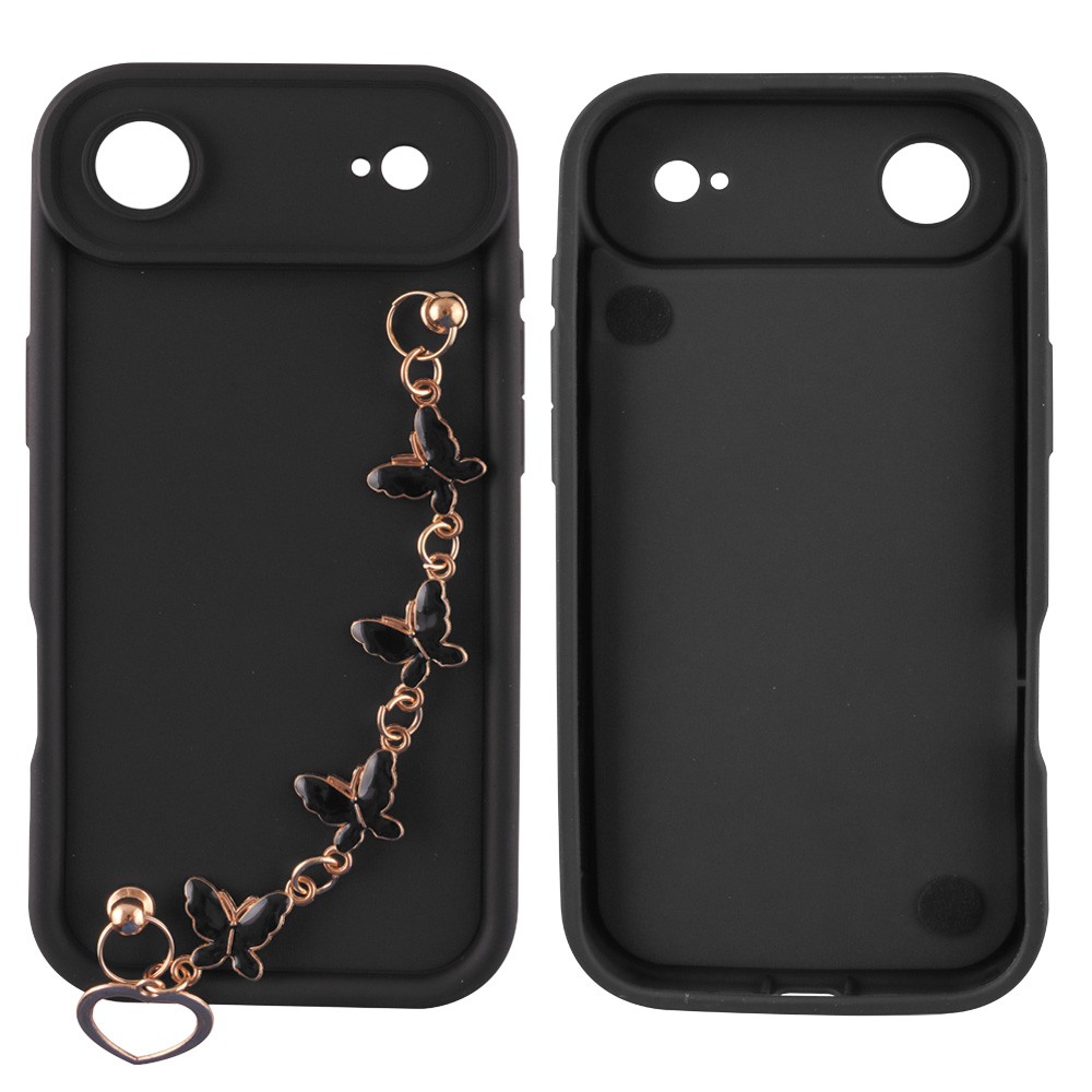 VOLTE-TEL ΘΗΚΗ IPHONE 17 AIR 6.5" SILICON TPU WITH STRAP FULL CAMERA PROTECTION BLACK WITH BLACK BUTTERFLIES