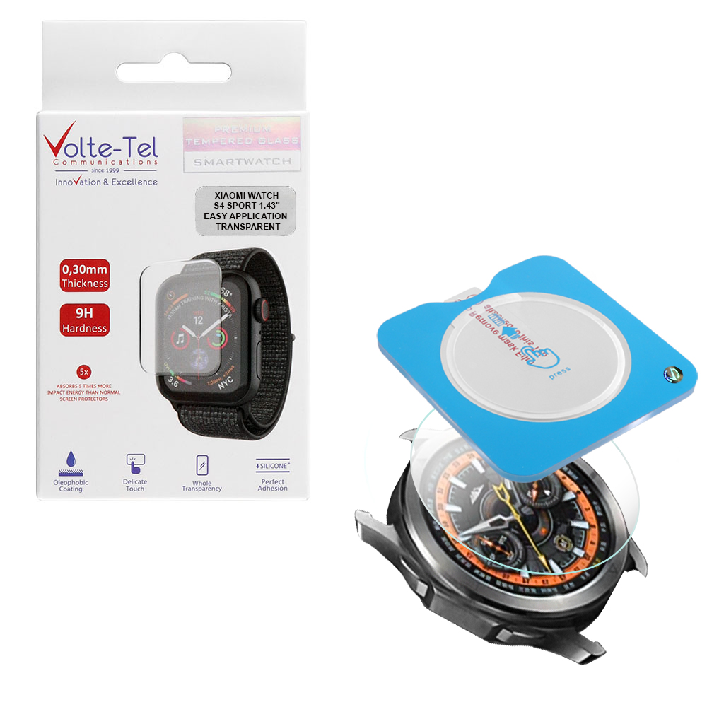 VOLTE-TEL TEMPERED GLASS XIAOMI WATCH S4 SPORT 1.43" 9H 0.30mm 2.5D EASY APPLICATION FULL GLUE FULL COVER TRANSPARENT