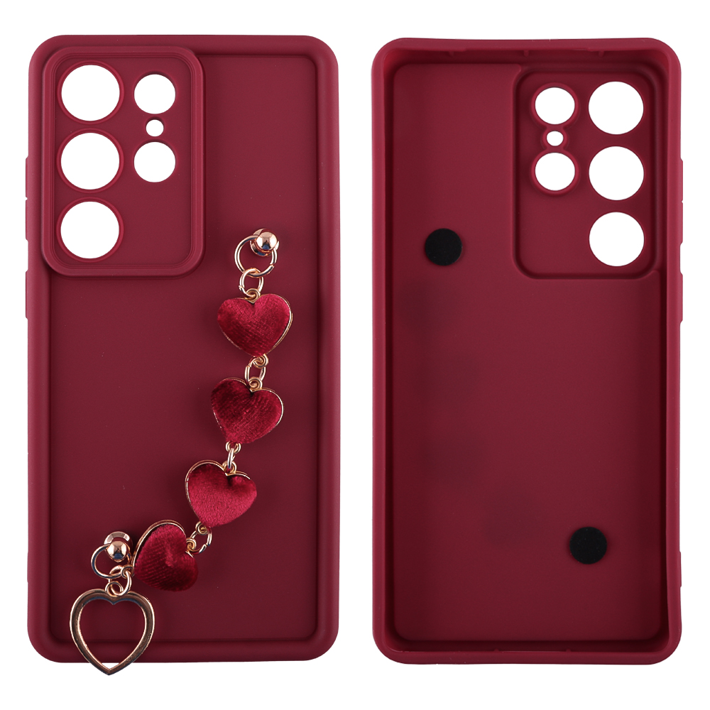 VOLTE-TEL ΘΗΚΗ SAMSUNG S25 ULTRA 5G S938 6.9" SILICON TPU WITH STRAP FULL CAMERA PROTECTION BURGUNDY WITH RED HEARTS